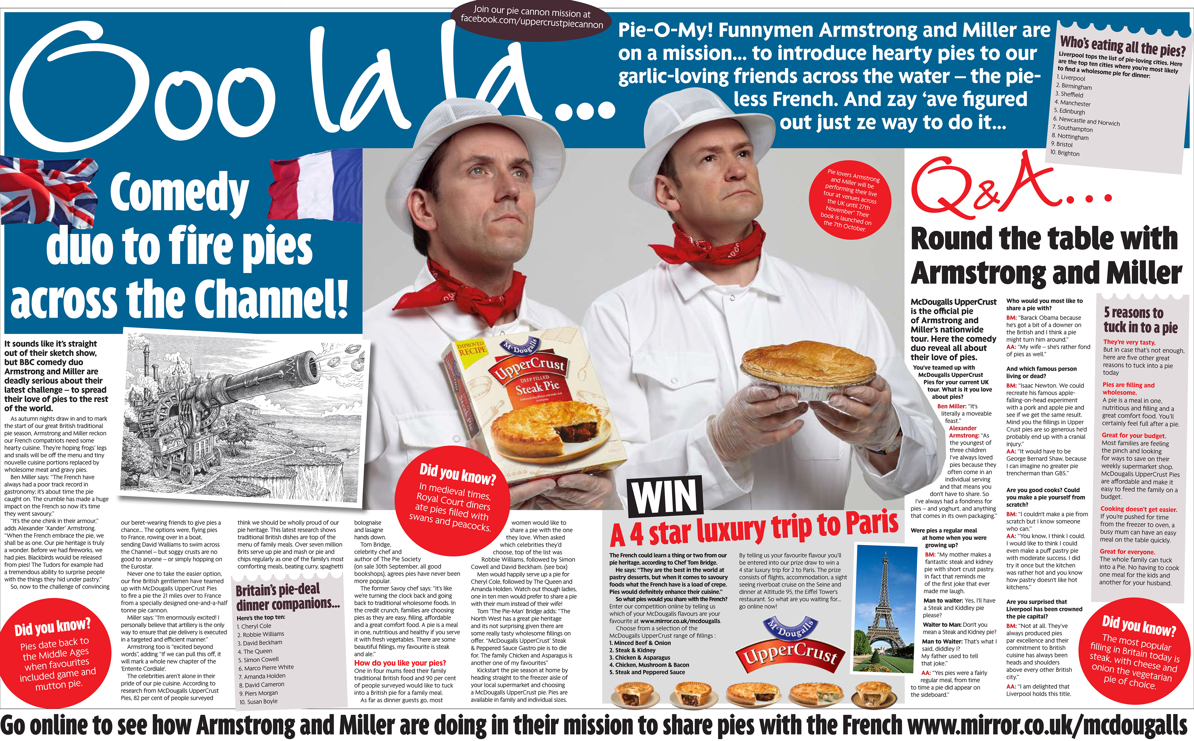 Contrary to popular belief, ze French have no word for pie. It’s ‘Le pie’ at best. When McDougalls Pies came to us looking for a PR splash we took it upon ourselves to liberate our crustless cousins, by hiring a crack team of artillery experts to build a 35ft pie cannon, capable of landing a pastry payload on French soil. See the documentary below.